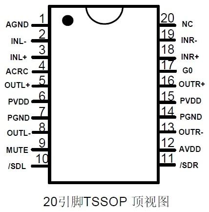 HT368 2×20W (VDD=14.5V, RL=4Ω, THD+N=1%) 或2×25W (VDD=14.5V, RL=4Ω, THD+N=10%) TSSOP-28 4.5V-16V 免電感濾波2*20W D類立體聲音頻功放 TPA3110/TPA3138/TPA3136/AD52068