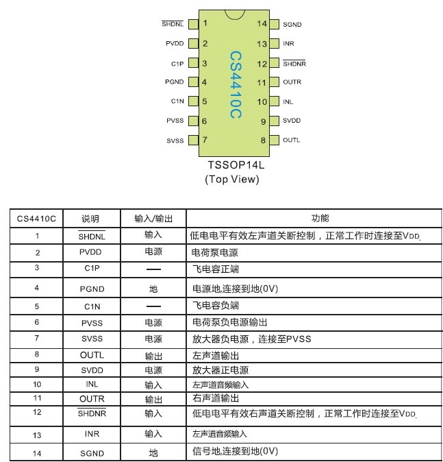 CS4420 2X130mW/3.6V/16Ω TSSOP-16 1.8V-5.5V 帶關(guān)斷功能130mW無輸出電容立體聲G類耳機(jī)放大器IC)
