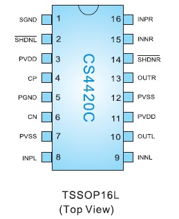 CS4420 工作在1.8V至5.5V單電源下,僅消耗5mA電源電流,具有短路保護與熱過載保護,額定溫度范圍是-40°C至+85°C。CS4420 采用16引腳TSSOP封裝,。