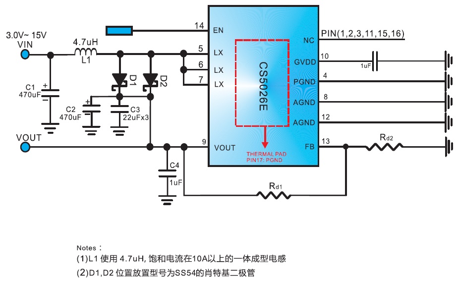 CS5038 輸入電壓范圍:3-16V,可調(diào)電壓輸出最高至22V/5A輸出 ESOP-16 3V-16V 內(nèi)置MOS,14A 高效率升壓DC-DC轉(zhuǎn)換器