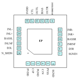 差分輸入、支持大動(dòng)態(tài)信號(hào)輸出、超低靜態(tài)功耗5μVRMS超低底噪, 400mW單聲道高性能音頻驅(qū)動(dòng)芯片 |
