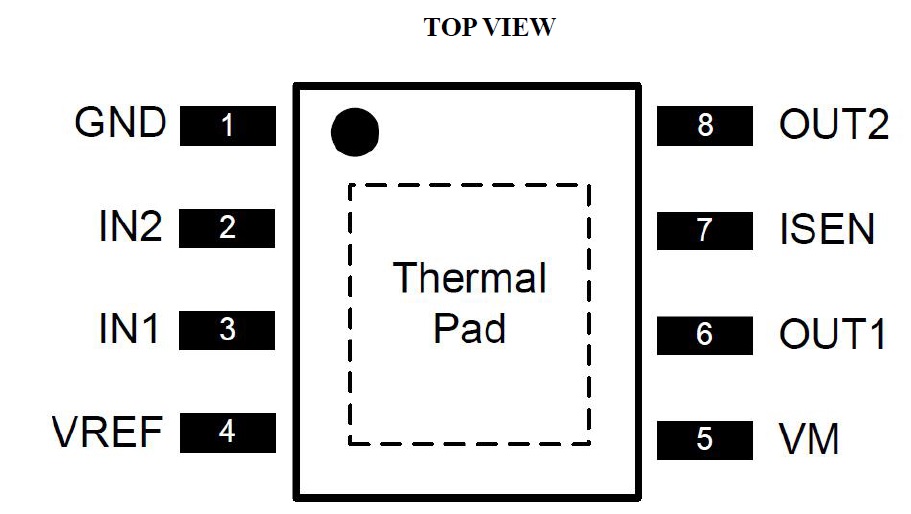 AT8870提供一種帶有裸露焊盤的SOP-8封裝,能有效改善散熱性能,且是無鉛產(chǎn)品,引腳框采用100%無錫電鍍。管腳功能完全兼容DRV8870/A4950.