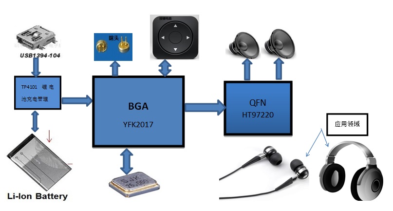 其中,YFK2017是一顆全集成自適應(yīng)主動(dòng)降噪雙模藍(lán)牙耳機(jī)芯片,具有全集成、高性能、低功耗等特點(diǎn),并可以同時(shí)支持BT4.2和BLE4.2,支持HIFI音質(zhì)(192Khz/24bit),SNR大于100dB,支持EQ以及各種音效技術(shù)(如超重低音,3D環(huán)繞等),支持多種噪音消除技術(shù),尤其是高性能的自適應(yīng)主動(dòng)降噪技術(shù),可以讓高端主動(dòng)降噪耳機(jī)省去昂貴的獨(dú)立主動(dòng)降噪芯片。