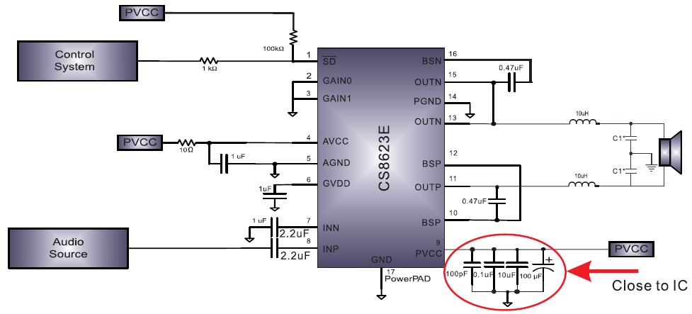 當(dāng)前位置:首頁->產(chǎn)品展示->功放IC->CS8623(可使用單面PCB、免濾波、30W單聲道D類音頻功放IC)