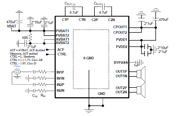 2X4.5W/2.7V-5.5V(內(nèi)置電荷泵無電感升壓模塊)/4Ω |