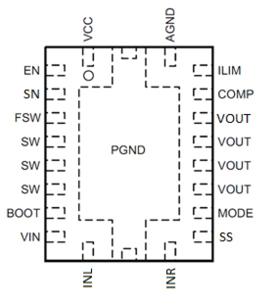 輸入電壓范圍VIN:2.7V-20V ;輸出電壓范圍VOUT:4.5V-20V ;可編程峰值電流:15A |