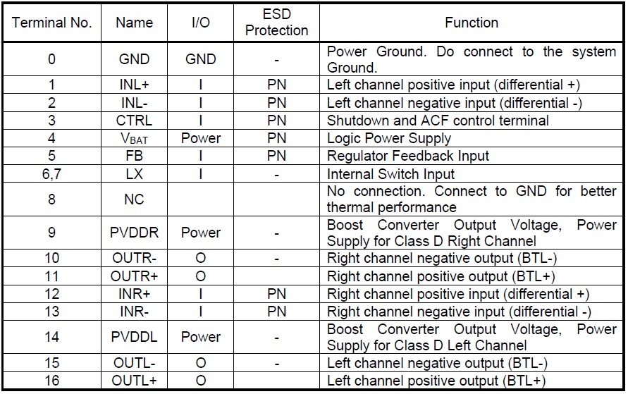 內(nèi)置升壓的30W立體聲D類音頻功放 |
