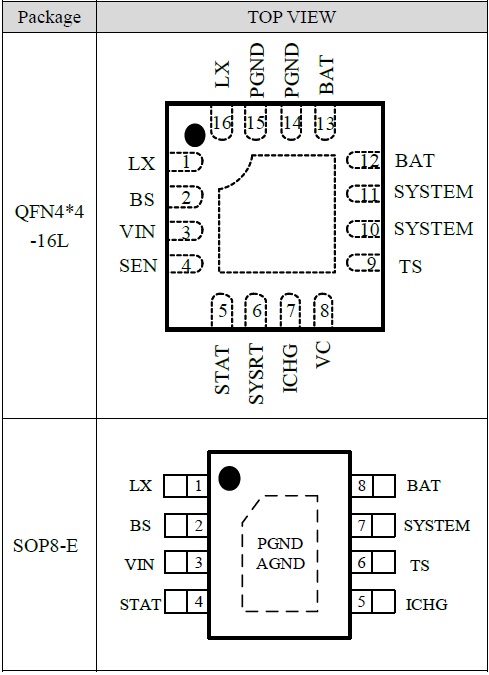 提 供兩種封裝 SOP8-E ( 無均衡功能)和QFN4X4-16L(帶均衡功能)。