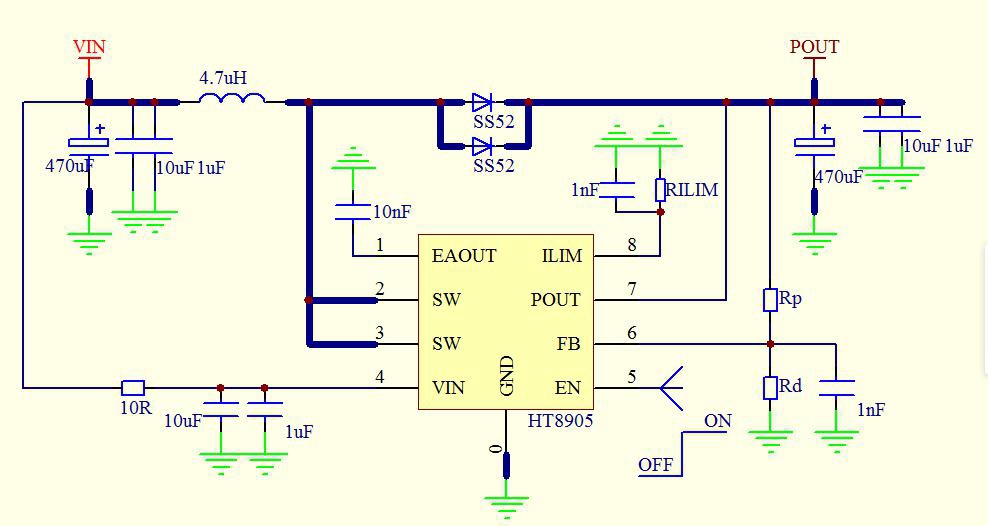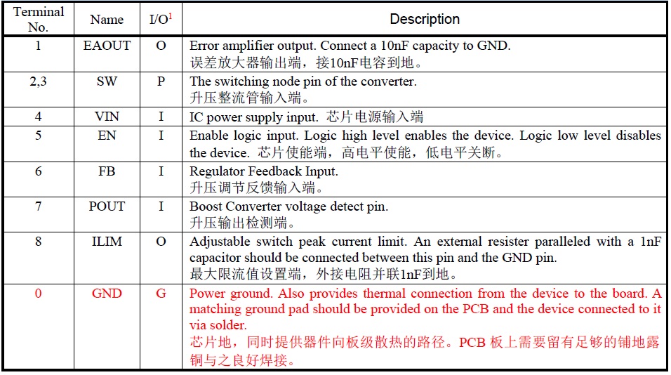 輸入電壓范圍VIN:2.7V-13V;輸出電壓范圍VOUT:4.5V-13V;內部固定峰值電流:10A