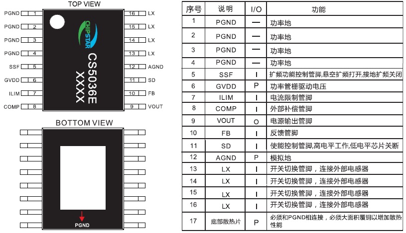 CS5036 輸入電壓:3-12V;輸出電壓最高可提供13V恒定的電壓輸出;最大可保證12A的峰值電流下 EQA-16 3V-12V 內(nèi)置MOS,12A高效率升壓DC-DC轉(zhuǎn)換器