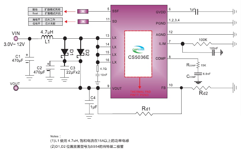 CS5028 輸入電壓:3-15V;輸出電壓最高可提供16V恒定的電壓輸出;最大可保證15A的輸入電流; ESOP-16 3V-15V 內(nèi)置MOS,15A 高效率升壓DC-DC轉(zhuǎn)換器