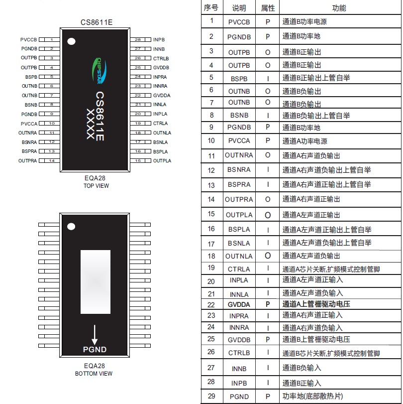 CS8611(30W+2X15W單芯片2.1聲道D類功放IC) |