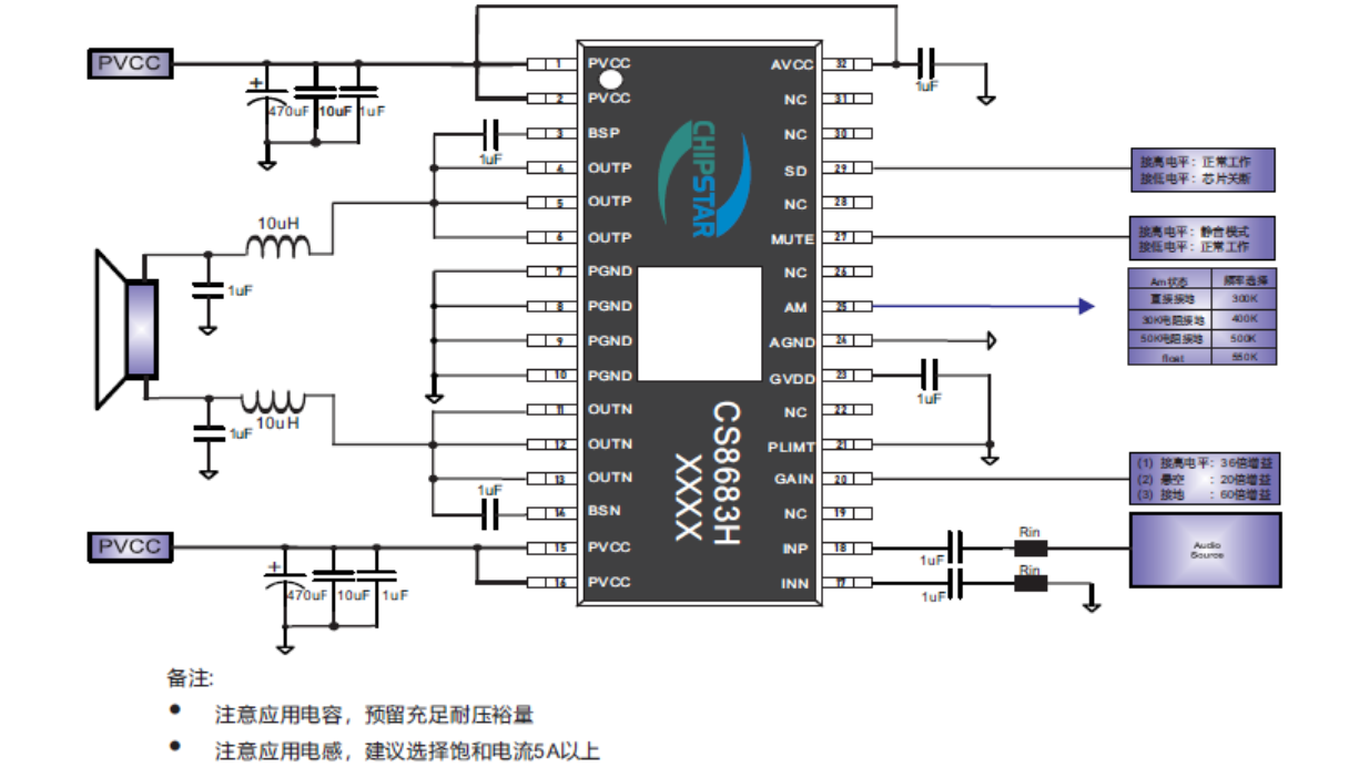 低空載電流、AM抑制功能、帶主從模式、80W立體聲大功率D類音頻功放IC |