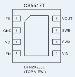 CS5517 輸入電壓范圍:1.8V -5.0V;輸出電壓范圍:1.2V-5.0V可調(diào);最大電流輸出能力:0.6A DFN-8 1.8V-5.0V 低功耗,單電感,升降壓,600mA DC-DC電壓調(diào)整器 CS5518