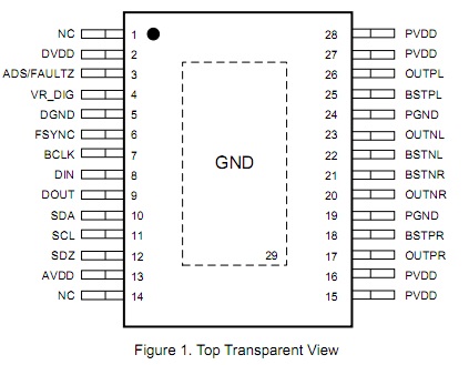 ACM8831 1×135W, 單聲道輸出 (4Ω, 32V, THD+N = 10%) TSSOP-28(散熱片朝上) 4.5V-34V 內(nèi)置DSP、I2S數(shù)字輸入135W大功率單聲道D類功放IC