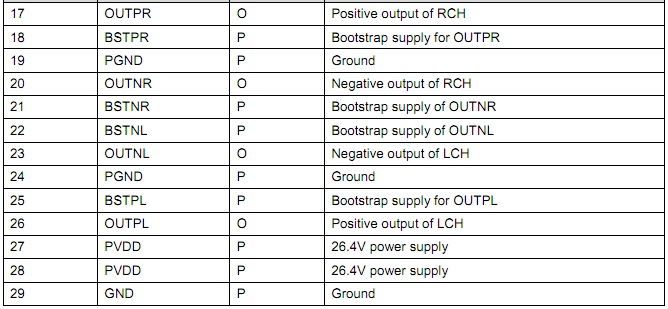 產(chǎn)品功能: 2x30W @1%THD+N into 8Ω BTL at 24V