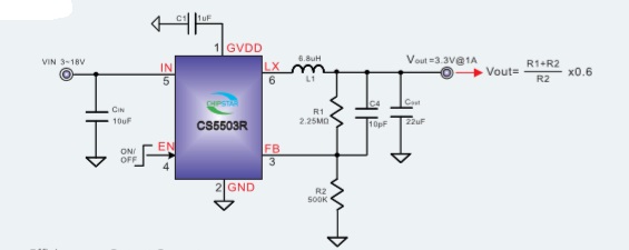 工作電壓范圍:3V-18V;最大電流輸出能力:1A;低功耗靜態(tài)電流小于6μA;100%占空比工作,可實現(xiàn)輸出電壓跟隨輸入 |