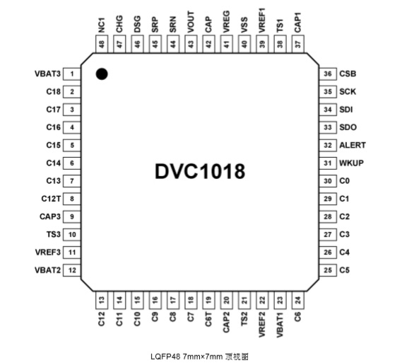 DVC1018 DVC1018是一款采用車規(guī)級(jí)高壓BCD工藝設(shè)計(jì)的9-18節(jié)鋰電池組監(jiān)控芯片,通過(guò)四線式SPI接口與上位機(jī)進(jìn)行通信,形成一套完整的電池組 管理系統(tǒng)(BMS)。 LQFP-48 28V-90V 9 節(jié)至18節(jié)鋰電池組監(jiān)控芯片