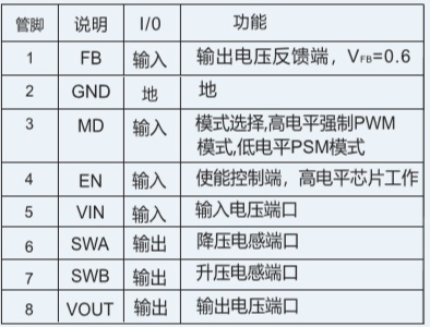 輸入電壓范圍:1.8V -5.0V;輸出電壓范圍:1.2V-5.0V可調(diào);最大電流輸出能力:0.6A |