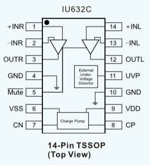 IU632C管腳功能兼容DRV632/SGM8903/AD22650,采用14引腳TSSOP14L封裝。