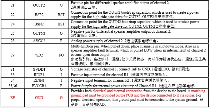 ACM8635 2×20W+40W, 2.1通道 (2×6Ω+4Ω, 18V, THD+N =10%) QFN-40 4.5V-21V 2×21W+1×42W 2.1聲道數(shù)字輸入D類音頻功率放大器、具有豐富的DSP音效處理以及ClassH動態(tài)升壓功能