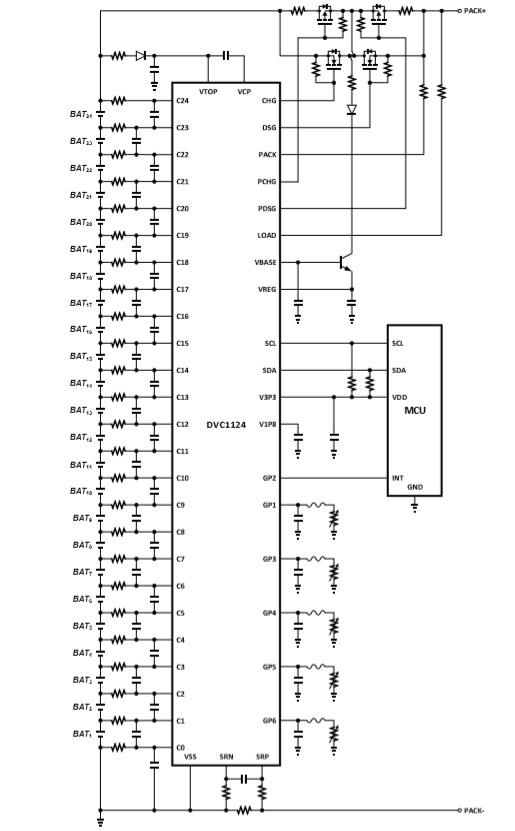 DVC1124是一款采用車規(guī)級(jí)高壓BCD工藝設(shè)計(jì)的多串鋰電池組監(jiān)控芯片,適用于總電壓不超過(guò)100V的鋰電池包。