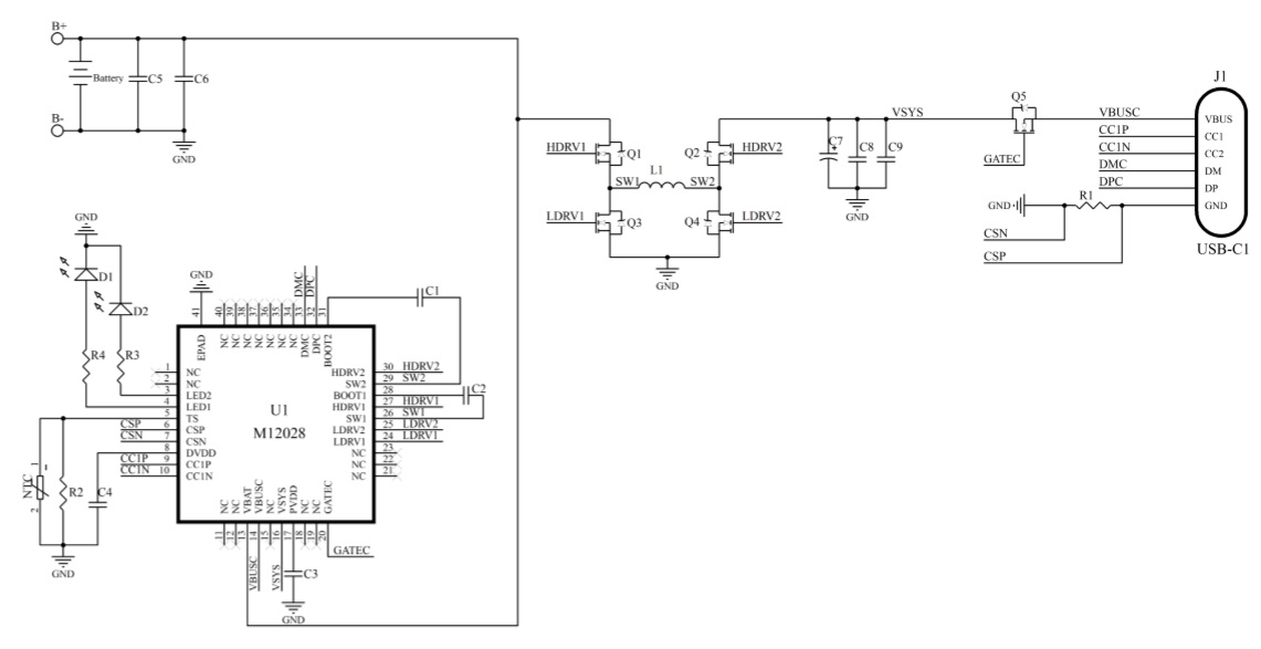 M12028是一款面向小家電、電動(dòng)工具、戶外藍(lán)牙音箱等充電的快充管理SOC,集成了同步開(kāi)關(guān)電壓變換器、快充協(xié)議控制器、電池充放電管理、電池電量計(jì)算等功能模塊,支持PD3.0、PD2.0、QC3.0、QC2.0、BC1.2 DCP、UFCS快充充電協(xié)議,額定充電功率100W,并提供輸入過(guò)壓/欠壓、電池過(guò)充、過(guò)溫、過(guò)流等完備的保護(hù)功能。搭載極簡(jiǎn)的外圍電路,即可組成2-4節(jié)電池的快充充電解決方案。 |