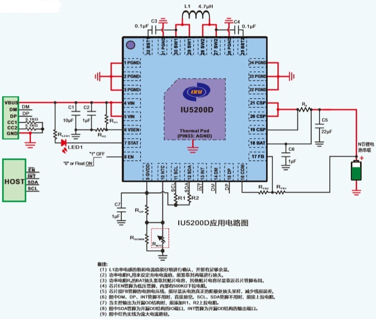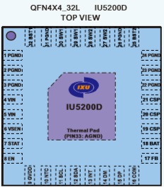 IU5200D支持I2C接口來控制充電過程的各個細(xì)節(jié)參數(shù),包括電池節(jié)數(shù)以及規(guī)格。采用QFN4X4_32L封裝。