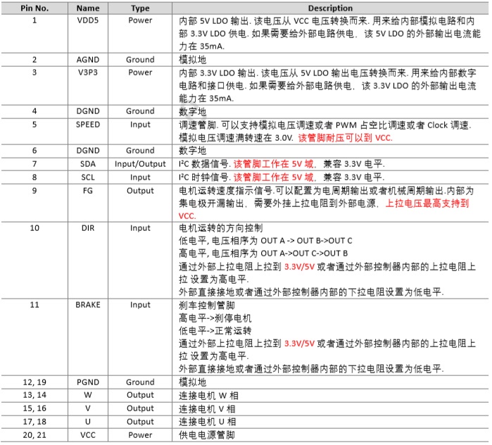 管腳定義以及管腳功能描述