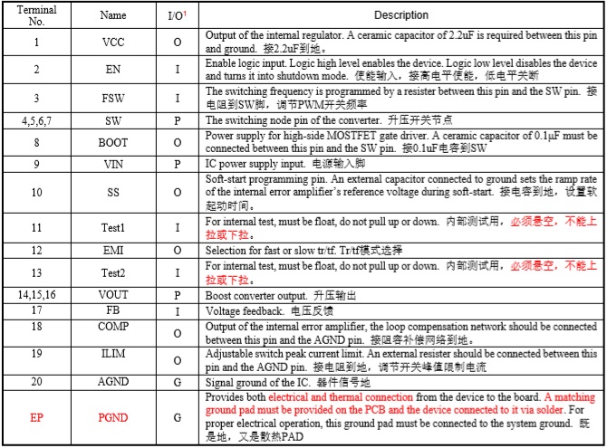 HT7178 輸入電壓范圍:2.7V -14 V;輸出電壓范圍:4.5V-20V ;可編程峰值電流: 14A DFN-20 2.7V-14V 20V 14A帶輸出關斷的全集成同步升壓IC TPS61088/HT7167