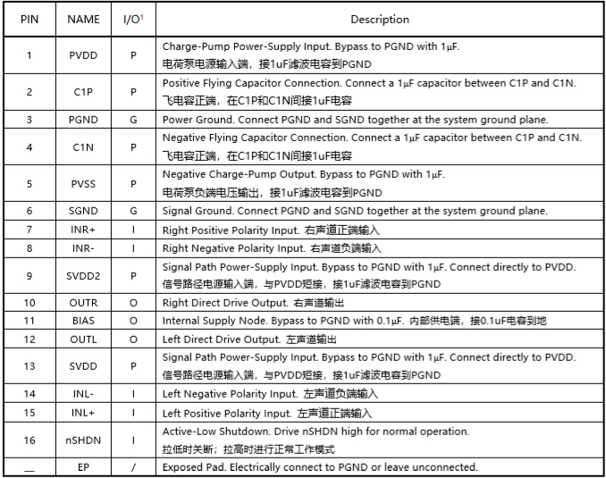 差分輸入、支持大動(dòng)態(tài)信號(hào)輸出、超低靜態(tài)功耗5μVRMS超低底噪, 400mW單聲道高性能音頻驅(qū)動(dòng)芯片 |