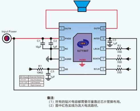 左右聲道可選,通過SD管腳電平設(shè)置
