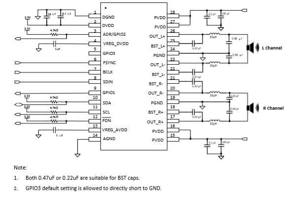 兼容型號: TAS5805/AD82128/ACM8625/ACM8628