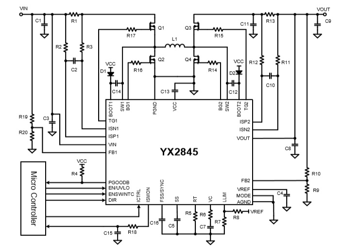 產(chǎn)品名稱: YX2845(45V雙向同步升降壓充放電控制器芯片)