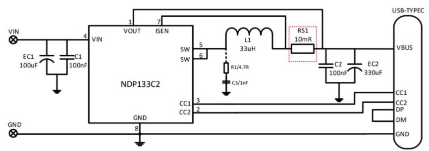 NDP133C2KC集成USB PD3.1快充協(xié)議,能自動檢測連接到USB端口的受電設(shè)備,以及自動調(diào)整輸出電壓。