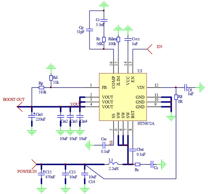 產(chǎn)品名稱: HTN872A(最高輸出電壓20V、 20A大電流全集成同步升壓芯片)
