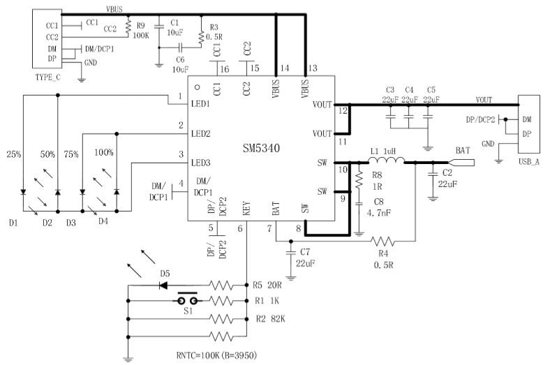 產(chǎn)品名稱(chēng): SM5340(TYPE-C同口充放電管理移動(dòng)電源芯片)